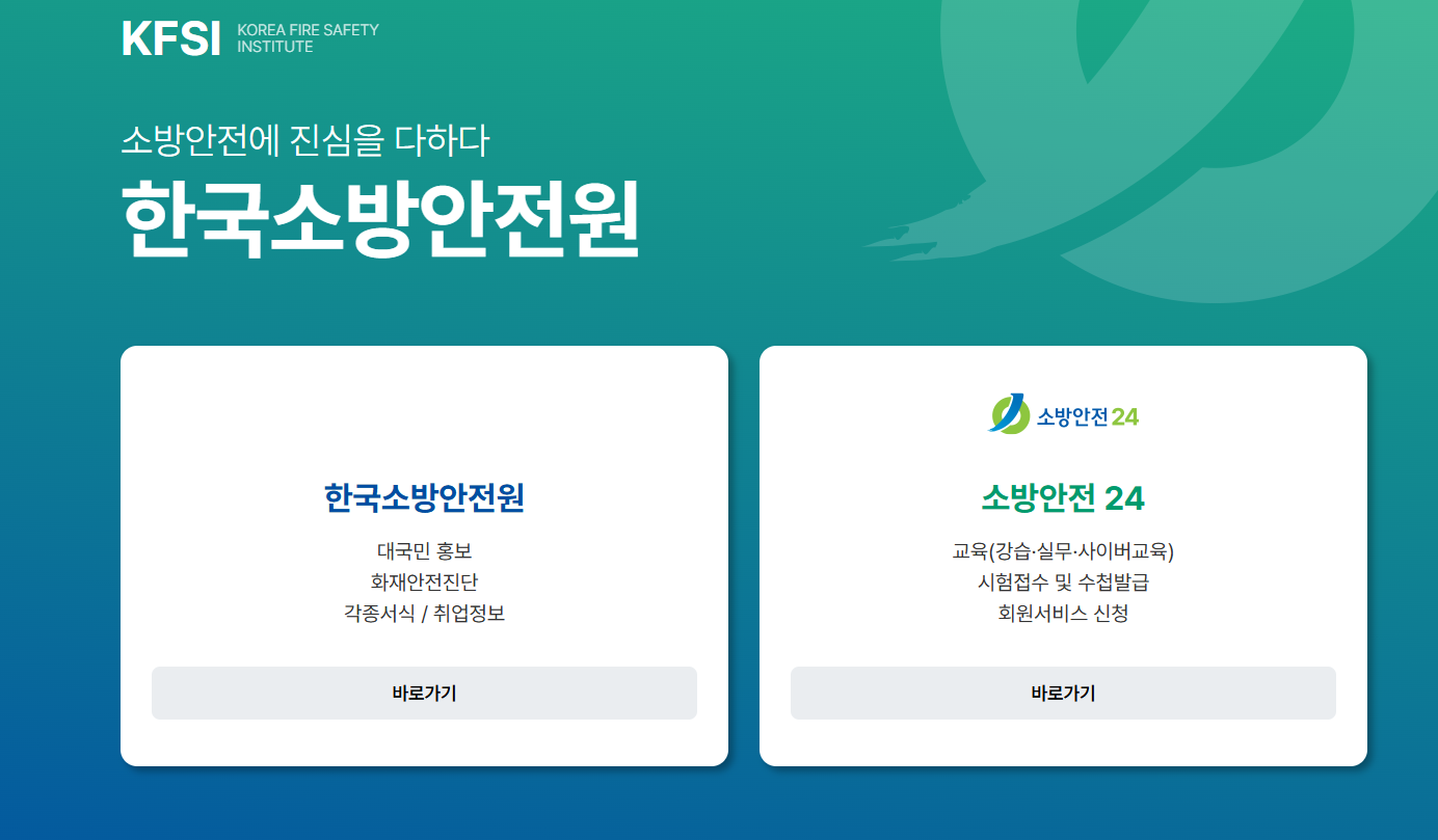 2026년 2월 23일에는 KFSI 종합정보시스템 개편이 정식 완료되어, 공식 홈페이지(kfsi.or.kr)는 기관 소식·정책 정보 중심으로, 소방안전24는 교육 신청·시험 접수 전용 플랫폼으로 역할을 분리해 운영 중입니다. 이번 개편은 2024년 5월 착수 이후 약 21개월간의 개발과 안정화 과정을 거쳐 완성되었습니다.
