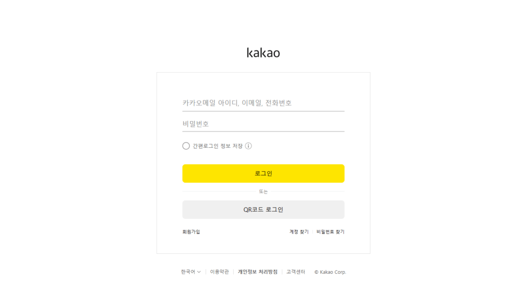 현재 다음의 모든 서비스는 카카오계정으로 통합되어 운영되고 있습니다. 예전처럼 독립적인 '한메일 로그인' 메뉴는 사라졌으며, 카카오계정 로그인 절차를 거쳐야 메일함에 접근할 수 있습니다.